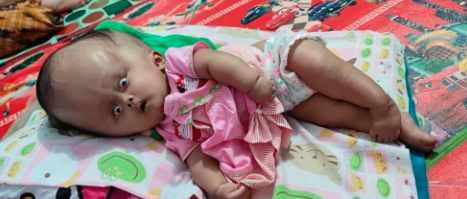 Seperti Putri Maolidia berusia 8 bulan pengidap Pembesaran Kepala, Benjolan diatas tulang ekor serta kelainan kaki kiri (Bengkok). Sejak lahir putri sudah mengidap berbagai kelainan fisik yang sudah terindikasi sejak dalam kandungan 6 bulan.