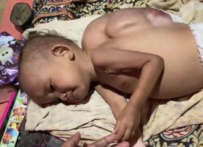Usianya 2 tahun namun tumornya lebih besar dari tubuhnya,, Rendi tidak bisa lagi berjalan bahkan hanya sekedar membalikan tubuhnya,,